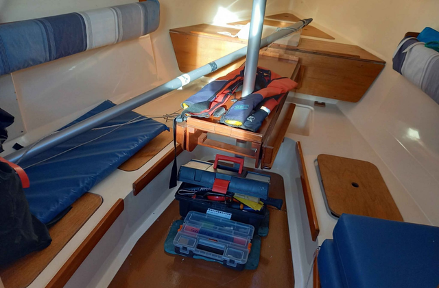 Accommodation for 6 berths, with cooker, compass, wind speed/depth/speed instruments, VHF, and GPS.