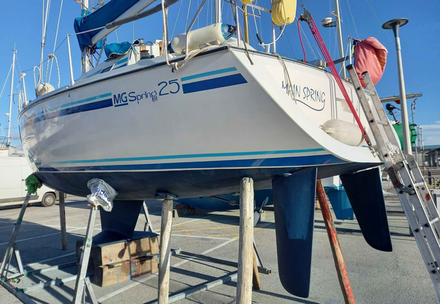 MG Spring 25ft racer/cruiser. Easy to sail, responsive, and a solid all-round performer with a shallow wing keel for versatile cruising.